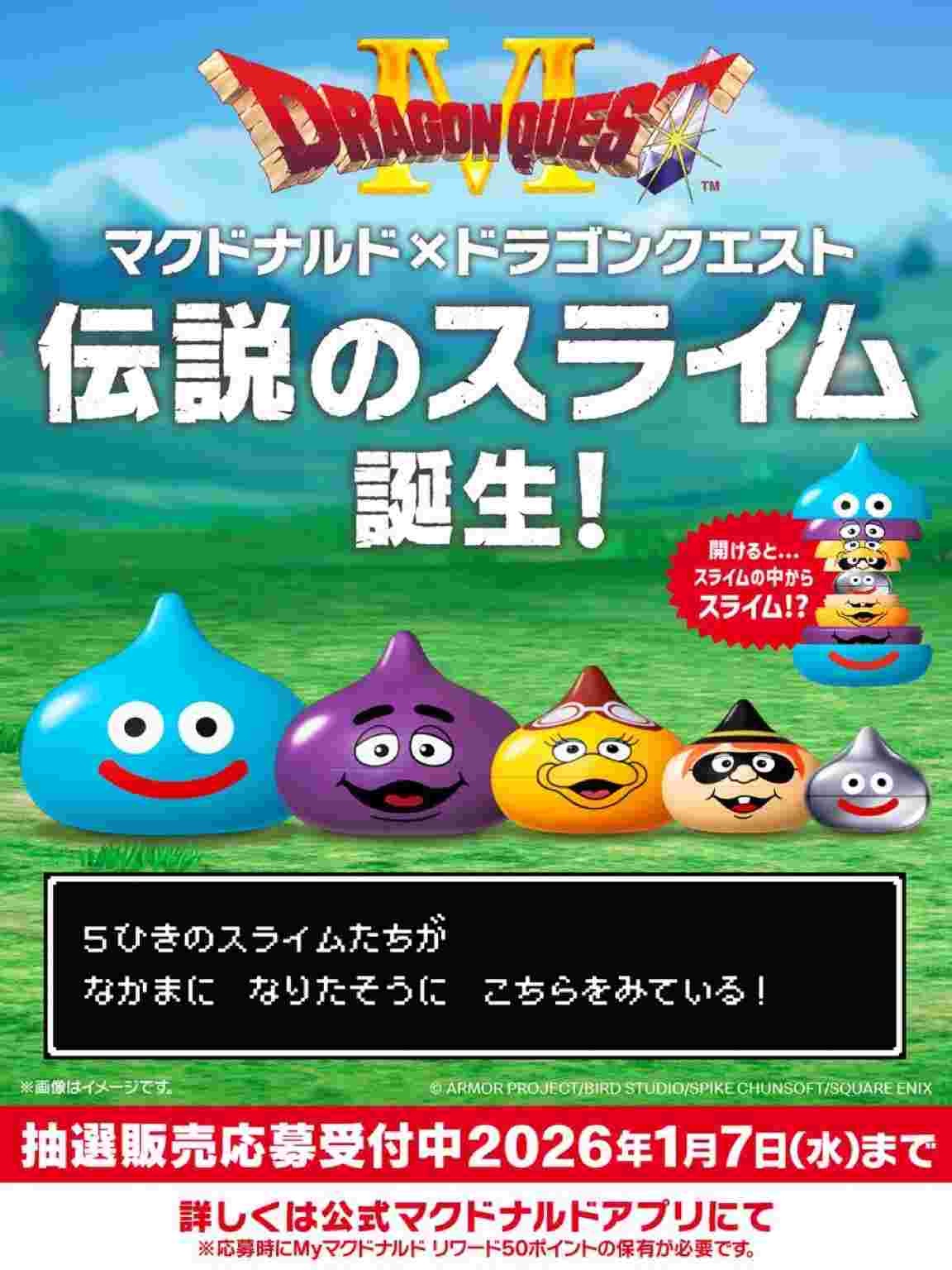マクドナルド「ドラゴンクエスト」と初コラボ!”スライム”グッズを抽選販売。事前抽選の受付開始