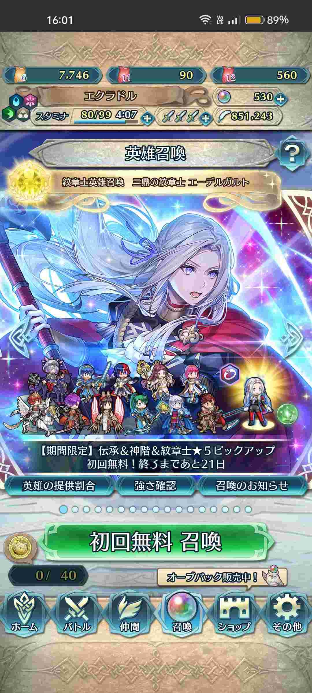 (っ´ω`c)ぽみぃらも大好きなエーデルガルトちゃんを狙って引きたいと思います 画面真ん中にでっかく映ってる女の子です とても可愛いですよね