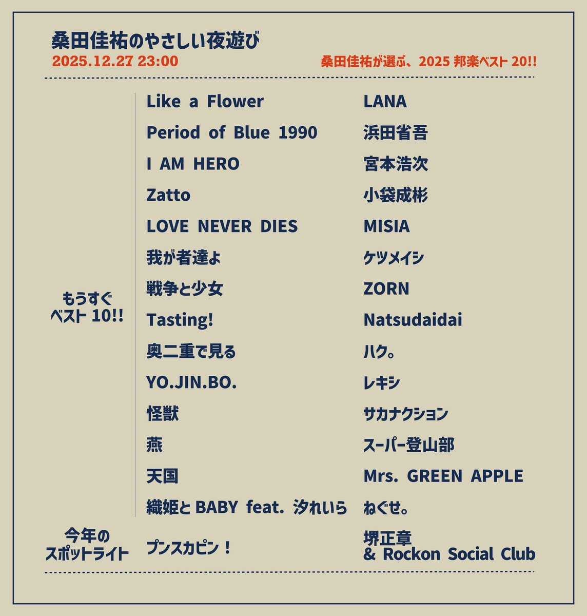 6年ぶりの企画「桑田佳祐が選ぶ、2025年 邦楽ベスト20」🏅便宜上の順位をつけさせていただきましたが……いかがでしたでしょうか?😳
