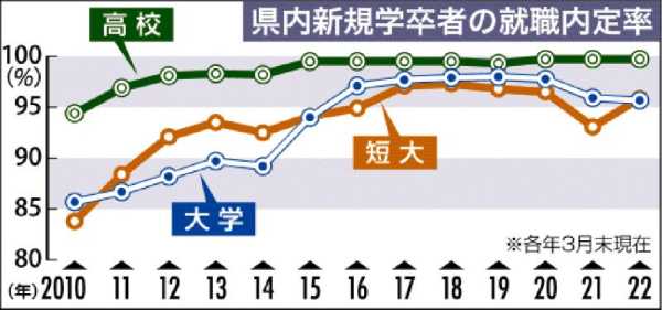 >大卒者における「超氷河期」は2000年であり、同年の有効求人倍率は0.59%、大卒の就職率は55.8%となっている