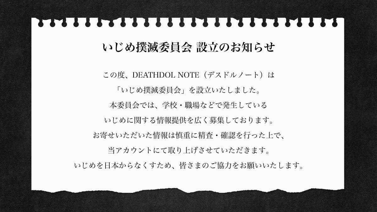 DEATHDOL NOTE (@DEATHDOL_NOTE) on X「いじめ撲滅委員会」設立のお知らせx.comへずまりゅう @hezuruy (2026/01/06 20:51:09)