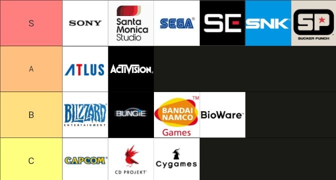 【画像】ゲームメーカーのティア表できたぞ!!!