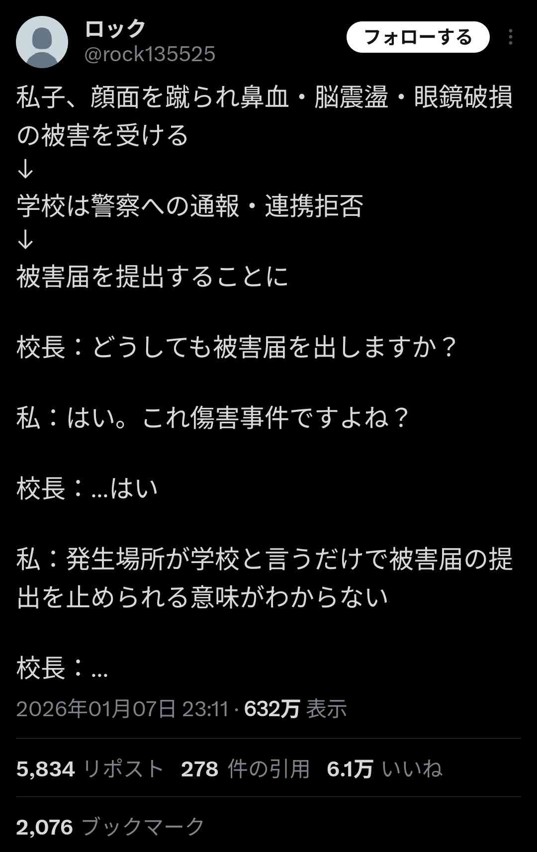 学校は社会のルールを学ぶ場でもあるんだから警察のお世話になったほうがいい - 37 : 2026/01/08(木) 15:39:25.55 ID:25VzErfY0