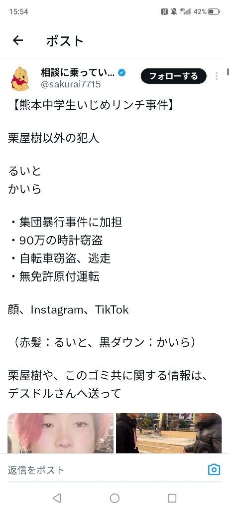 - 熊本の方は主犯の親がヤクザ崩れということが判明して以来、サーッとSNS界隈がトーンダウンしてて草