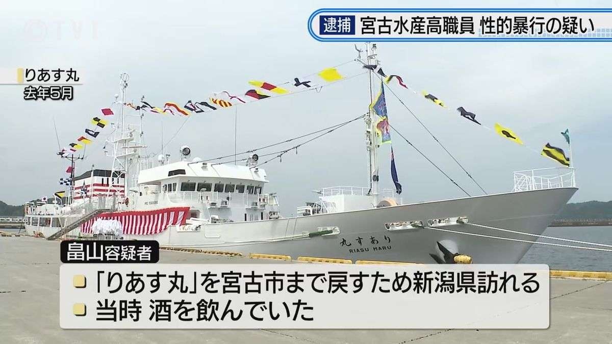 不同意性交等の疑いで逮捕されたのは、宮古水産高校の実習船でエンジンを修繕する業務を担う操機手の畠山一夢容疑者30歳です。