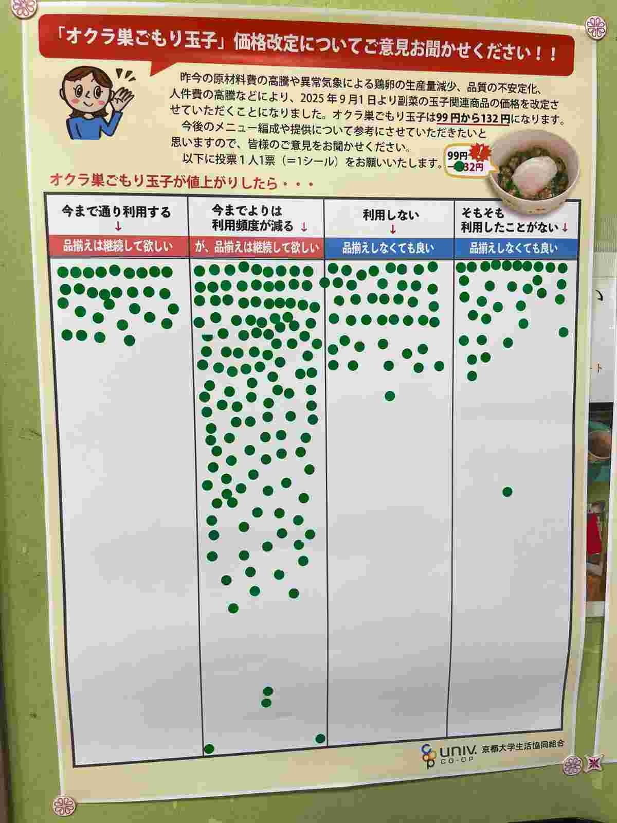 京大学食の人気メニュー「オクラ巣ごもり玉子」も99円から132円に大幅値上げ