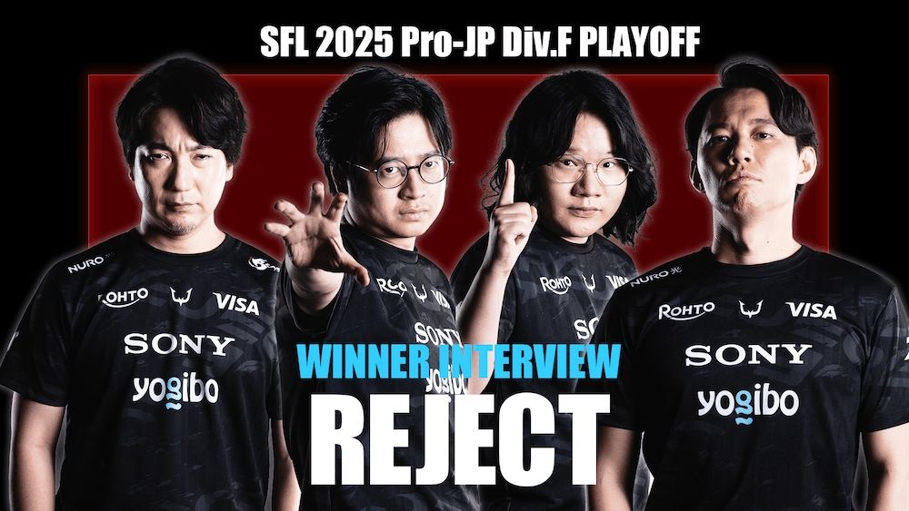 SFL2025 Div.Fプレーオフを制したREJECT。先鋒・中堅連敗からの大将戦、オーダー変更の舞台裏、そしてLeShar勝利からの流れの変化と“分岐点”やオフライン参戦の意義、CRとの決戦を見据えた覚悟を聞く。