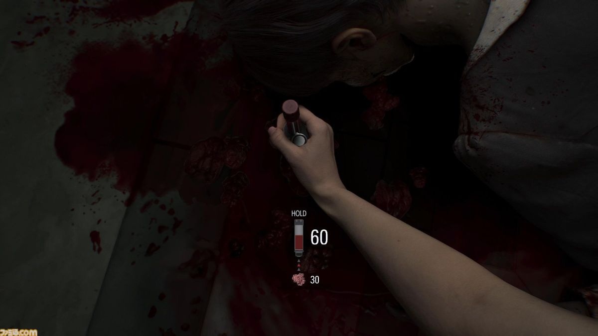 おもしろいのが、施設内にある血だまりや、ゾンビを倒した際に飛び散った血液を採集し、それをクラフト材料として利用できる点。血液でハンドガンの弾や破血アンプル(未発見状態の敵を背後から一撃で倒せる。ひるませた敵にも有効)などもクラフトでき、つねに一定量の血液を持っておくと探索が捗りそう……と思いきや、スクラップなどのクラフト用素材も含めてカバンを圧迫してしまうのが痛し痒し。アイテムボックスを活用し、いつ、何を持ち出すかを考えつつ行動しなければならない。