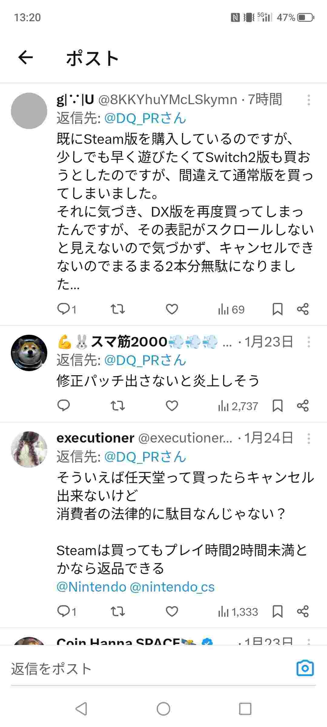 【誹謗】任天堂さん「ドラクエ7」を二重購入させ、返金を求めると拒否し、客に商品すら渡さず悪質クレーマー扱い