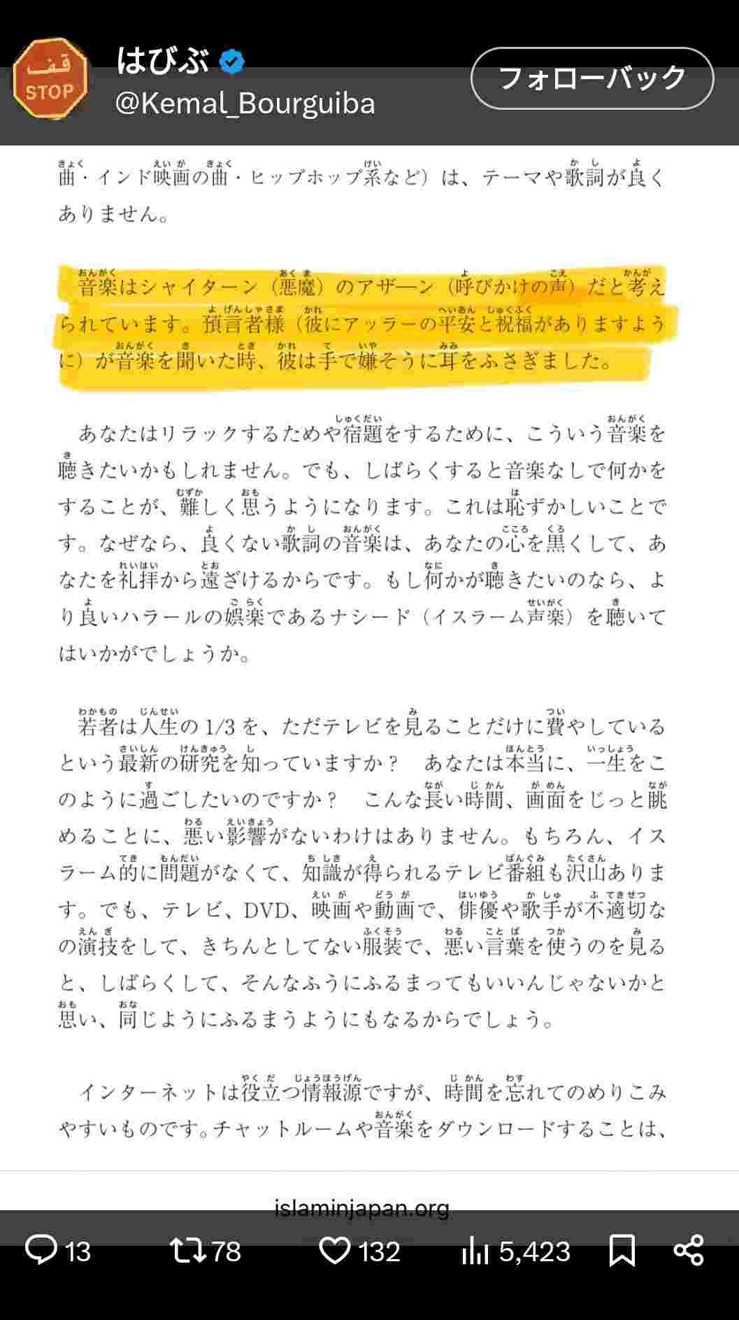 日本のモスク「音楽は悪魔のささやきだ !」ケンモメンさぁ、イスラムは寛容って言ってなかったか?