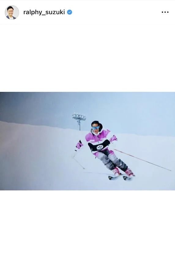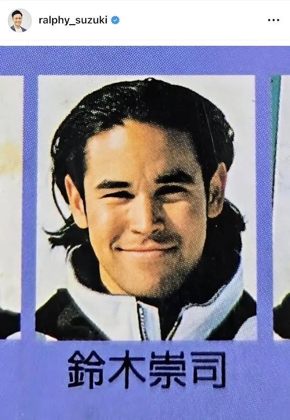 本名の「鈴木崇司」の名前が入った、オールバックヘアで柔らかい笑顔を浮かべた顔写真や、雪山を滑り降りるショット、幼少期の写真をアップし、「滑りのスタイル、ギアの種類、ファッション、写真の画質、鈴木崇司、etc…ツッコミどころ満載ですね…」とつづった。