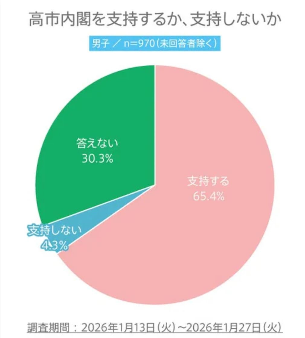 まず、高市内閣を支持するか、しないかは下記の通り。【グラフ】