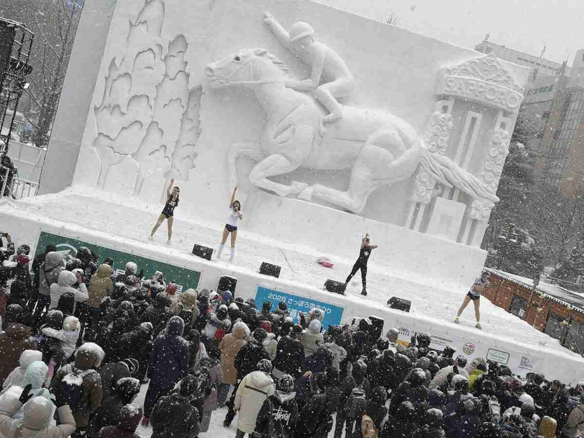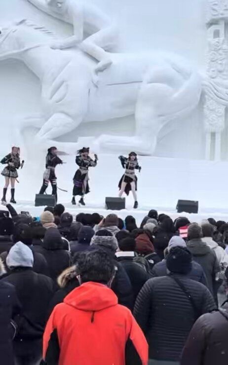 【画像あり】さっぽろ雪まつりの会場でスク水で歌うアイドルが現る