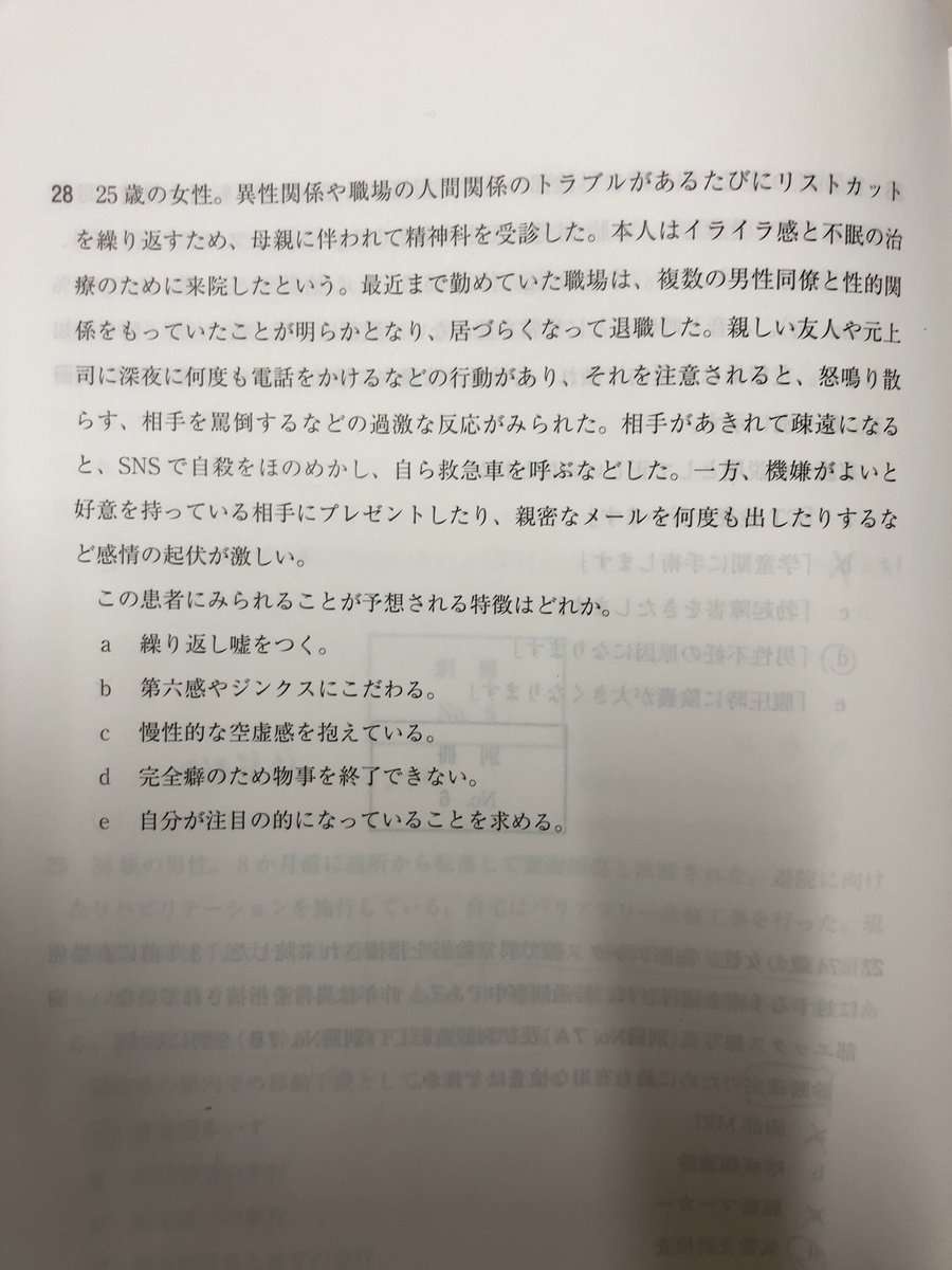 - これは5年前の医師国家試験に出たメンヘラ女の問題
