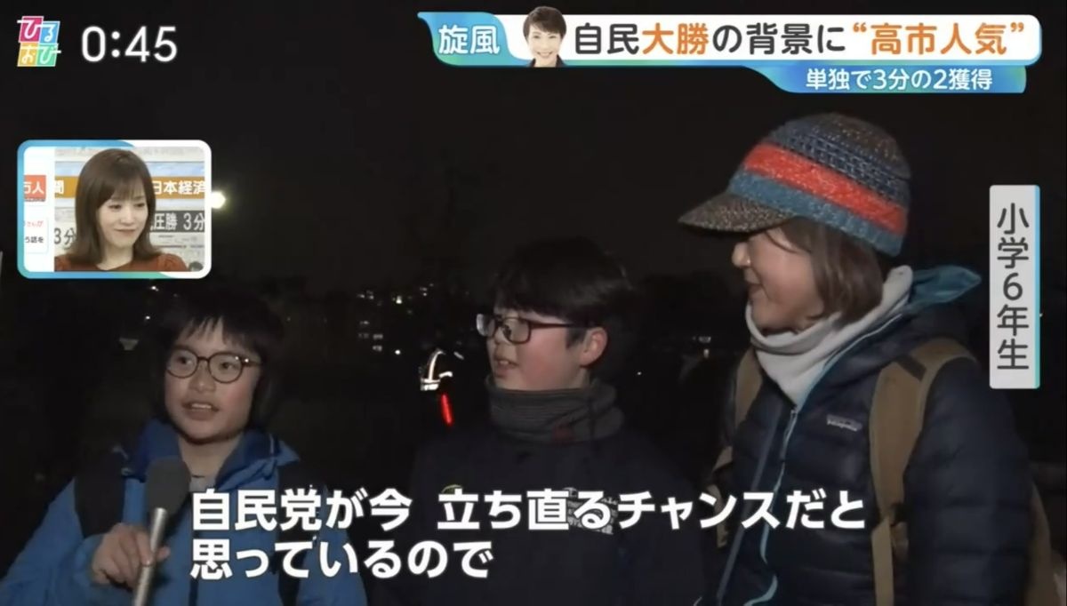 小学6年生「自民党は今立ち直るチャンスだと思う。自民党が高市さんの人気を上手く使っていて感心している」