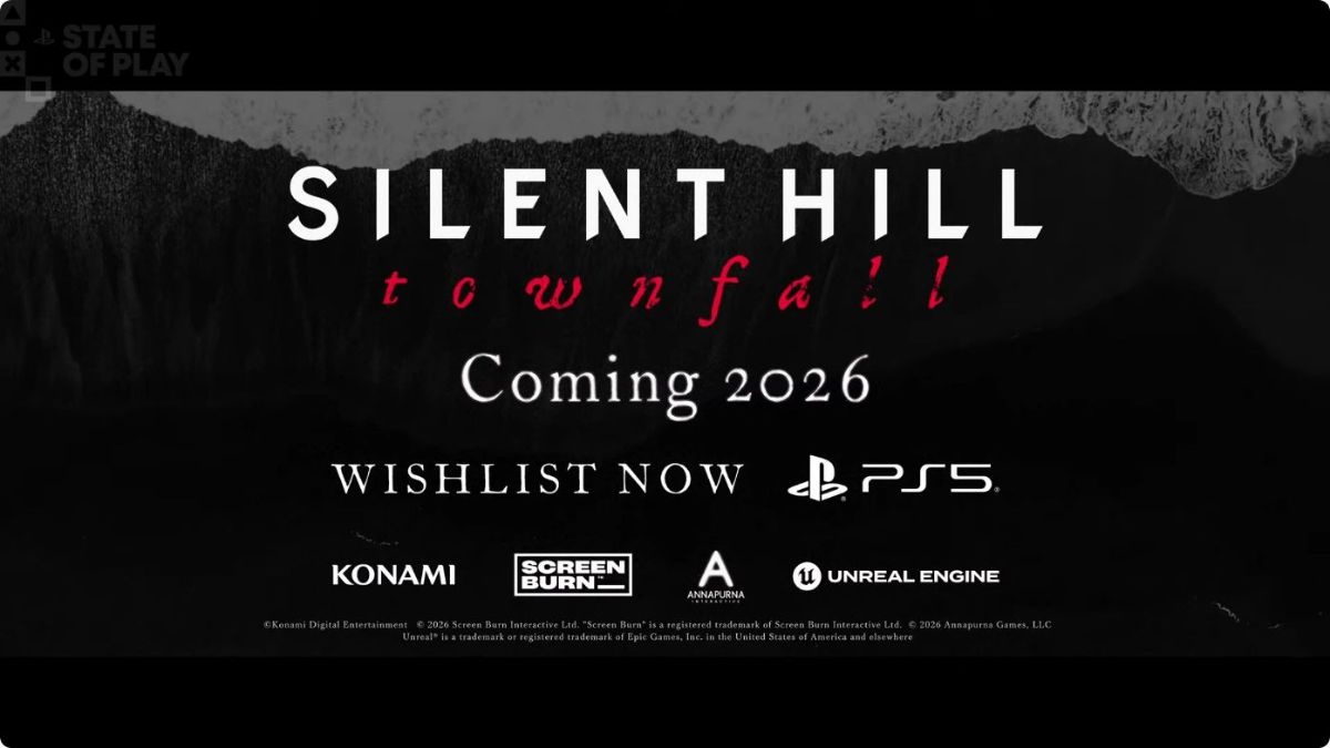 2月13日放送の「State of Play」にて、『サイレントヒル』シリーズ最新作『SILENT HILL: Townfall』が発表された。2026年の発売を予定している。また、本作は2月13日9時より配信予定の情報番組「SILENT HILL Transmission」でも情報公開が予定されている。