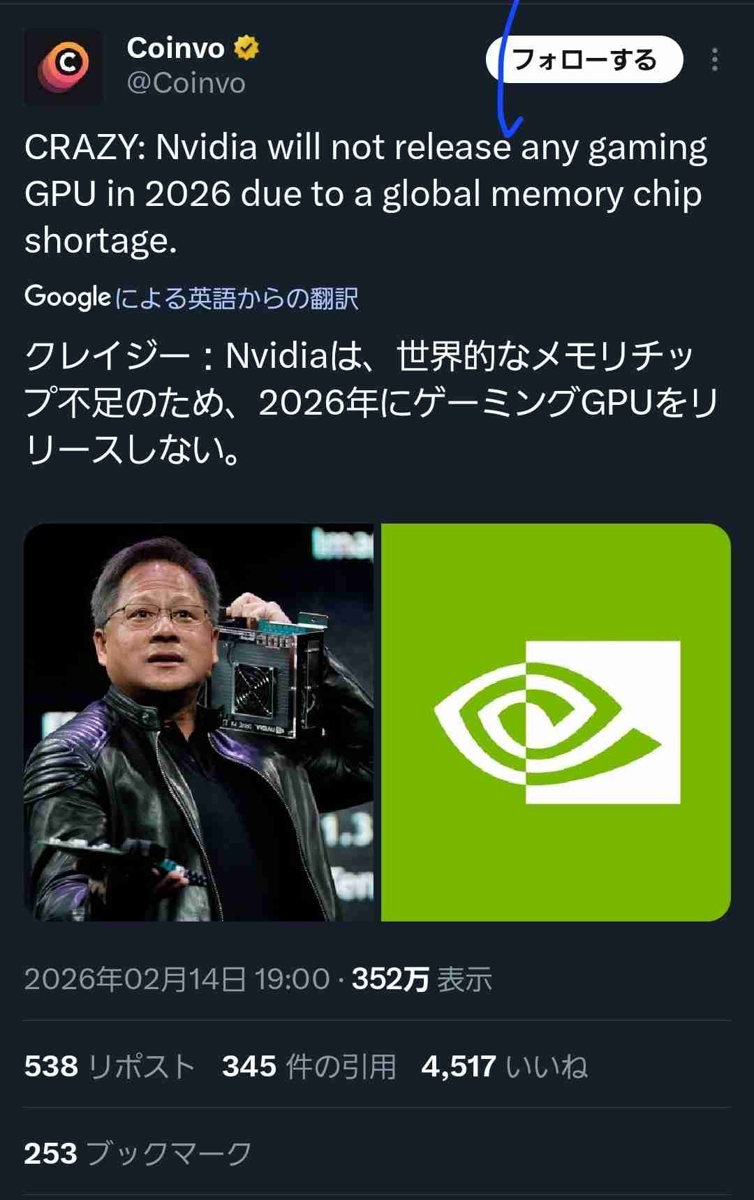 NVIDIA(エヌバイダー)、2026年はゲーム用GPUの発売はしないと発表