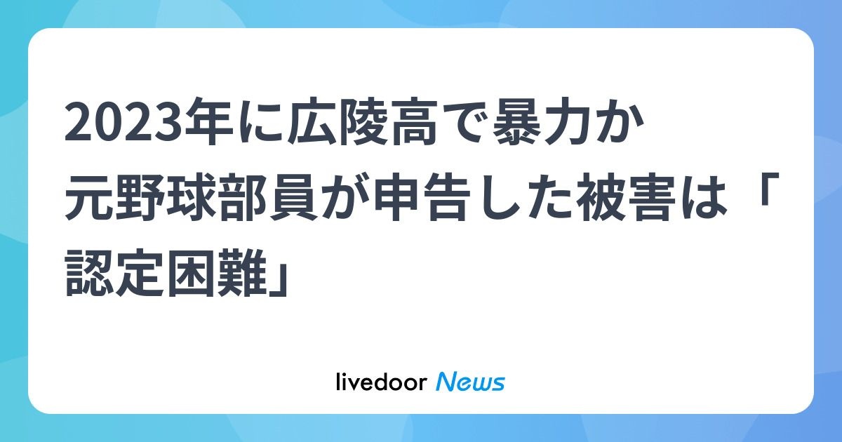 https://news.livedoor.com/article/detail/30592813/広陵高(広島市)は16日、2023年に暴力被害に遭ったとする元野球部員の訴えに基づき設置した第三者委員会の調査結果を公表した。聞き取りなどの結果、元部員が申告した被害はいずれも「認めることは困難だ」と判断した。