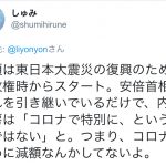 そりゃあ止めたりしたら復興はまだ終わってないぞって東北民から反発食らうから止めれなかっただけでしょ - 208 : 2020/04/14(火) 21:59:27.37 ID:PmnNLcC30