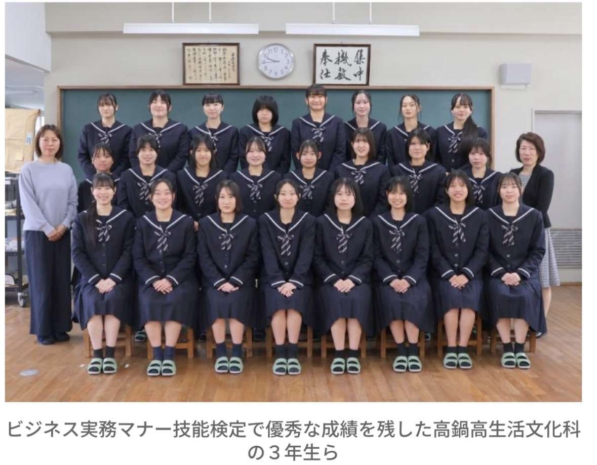 職場でのマナーの習得を審査する「ビジネス実務マナー技能検定」で優秀な成績を収めたとして、高鍋町・高鍋高(間曽妙子校長、553人)が、検定を主催する公益財団法人実務技能検定協会(東京都)による団体表彰で最優秀の「文部科学大臣賞」に選ばれた。高い合格率や検定に向けた組織的な取り組みが評価された。