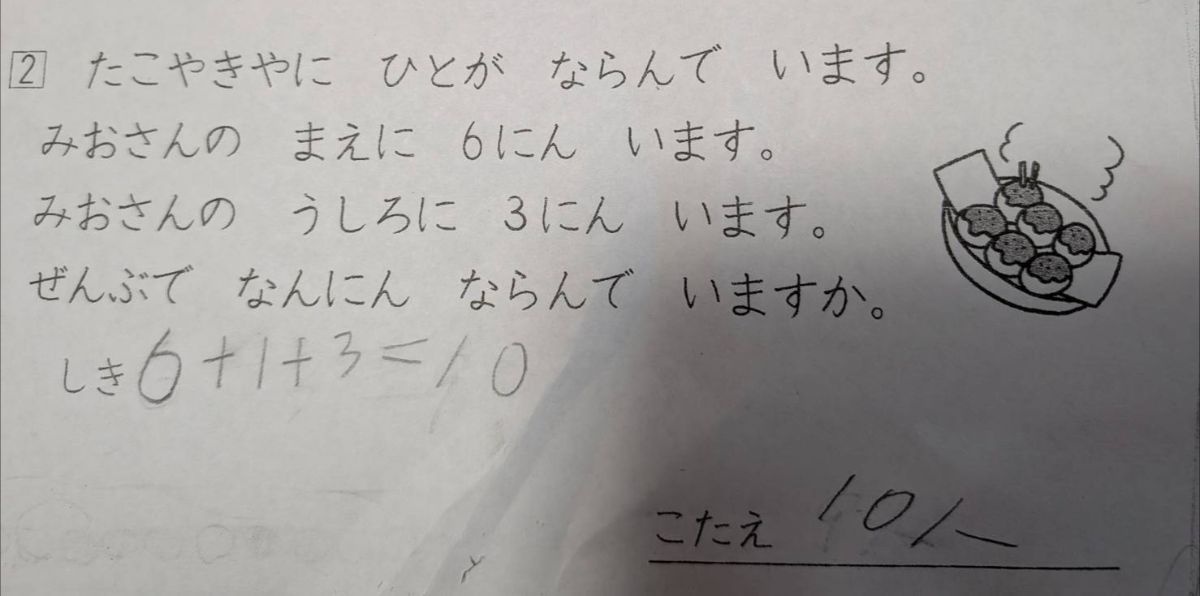 - みおさんの前後に人がいるだけでたこ焼きやに並んでるとはいってないから0人
