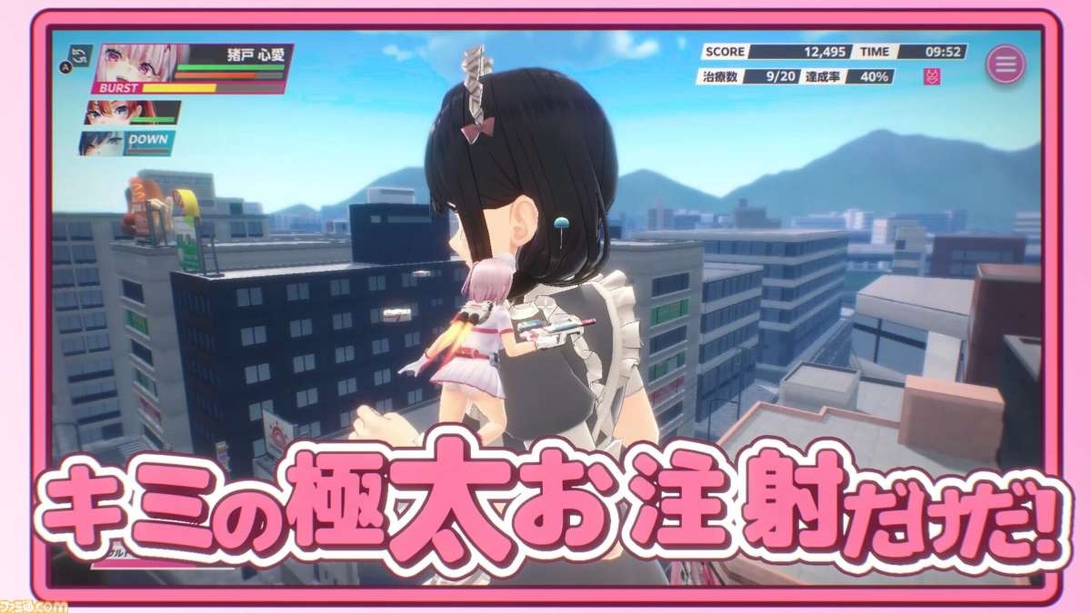 本作は、謎のウイルスによって巨大化してしまった女の子たちを救い出す、爽快シューティングアクションゲームです。プレイヤーはワクチンを発射する銃と、迫力満点の特大注射器を駆使して、暴走するウイルスに立ち向かいます。迫りくる巨大化ガールたちを救えるのは、あなたの極太お注射だけ!?スケールもテンションも規格外のド派手救出ミッションが、ここに開幕します。2026年発売予定。続報にぜひご期待ください。