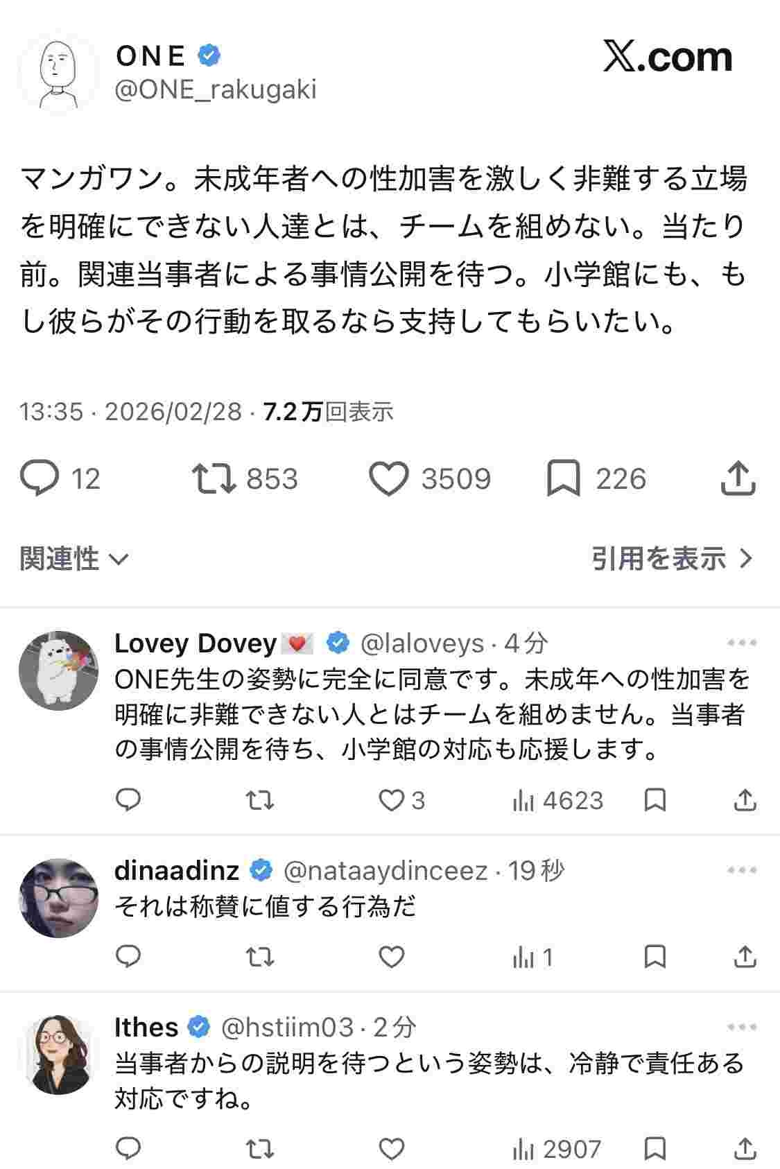 その未成年淫行を隠蔽した小学館の問題だよ - 11 : 2026/02/28(土) 14:25:30.482 ID:w62cSo4i0