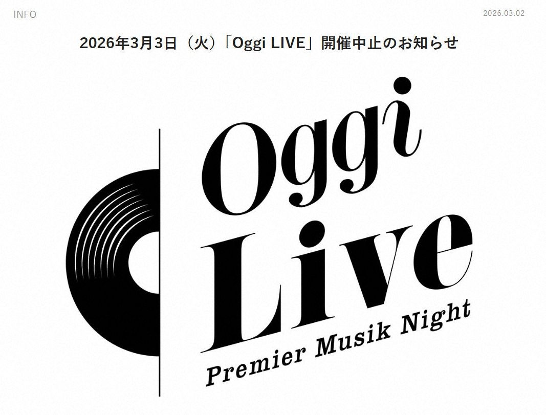 https://news.yahoo.co.jp/articles/1c5d511399356d7c55d7324e849fe1cdc4c5d5d1小学館主催で明日3日開催予定だったイベント「Oggi LIVE」が中止となることが2日、分かった。女性ファッション誌「Oggi」の公式サイトなどで発表された。
