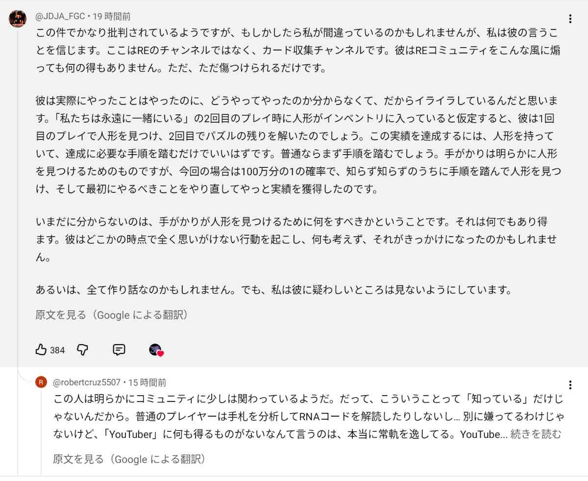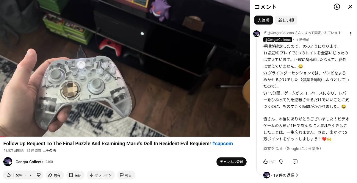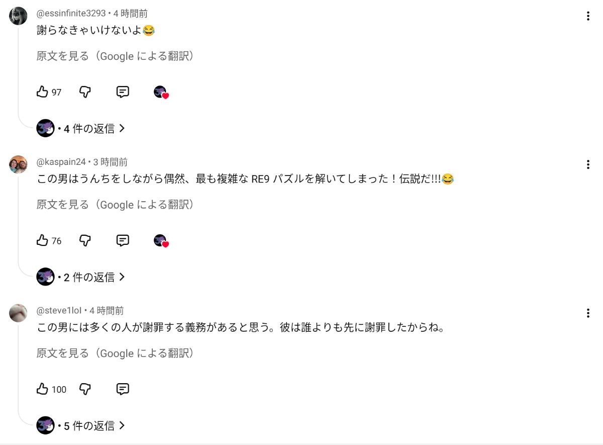 本当にそれで達成できることが判明して世界中のバイオファン達がコメント欄でポケモンおじさんに謝罪中