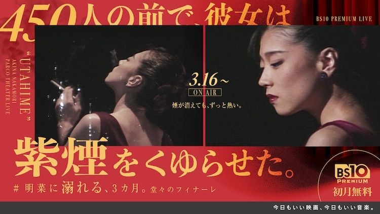 BS10プレミアムが「明菜に溺れる、3カ月。」と題して中森明菜のライブ映像を3カ月連続でオンエア。ラストの月となる今月は、7つのライブの模様を3月16日から21日の6日間にわたって放送する。
