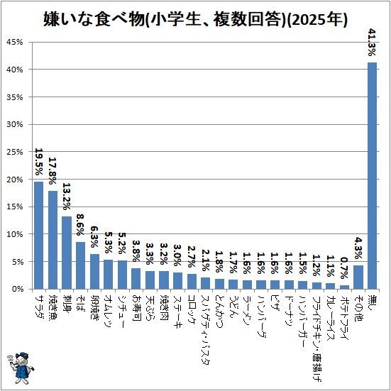 小学生が嫌いな食べ物の実情をさぐる(2025年調査版)(不破雷蔵) - エキスパート - Yahoo!ニュース食べ物の好き嫌いは個性の問題だが、子供の頃は自分の好き嫌いを容易に行動に移しやすい。嫌いなものは執拗に避けようとするし、場合によっては出されたものを捨てたり隠したりすらしてしまう。今回は学研教育総合研news.yahoo.co.jp- 2 : 2026/03/16(月) 16:41:34.84 ID:DYreweYN0