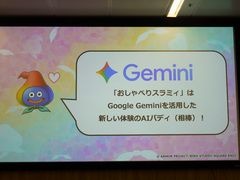 スクウェア・エニックスが、MMORPG「ドラゴンクエストX オンライン」(DQX)に、生成AIを活用した対話型パートナー機能「おしゃべりスラミィ」を導入する。GoogleのAIモデル「Gemini 3 Flash」とリアルタイム対話API「Gemini Live API」を組み合わせ、プレイヤーと音声で対話できるAIキャラクターを実現するという。Google Cloudが開催した説明会で発表し、デモを交えて詳細を披露した。