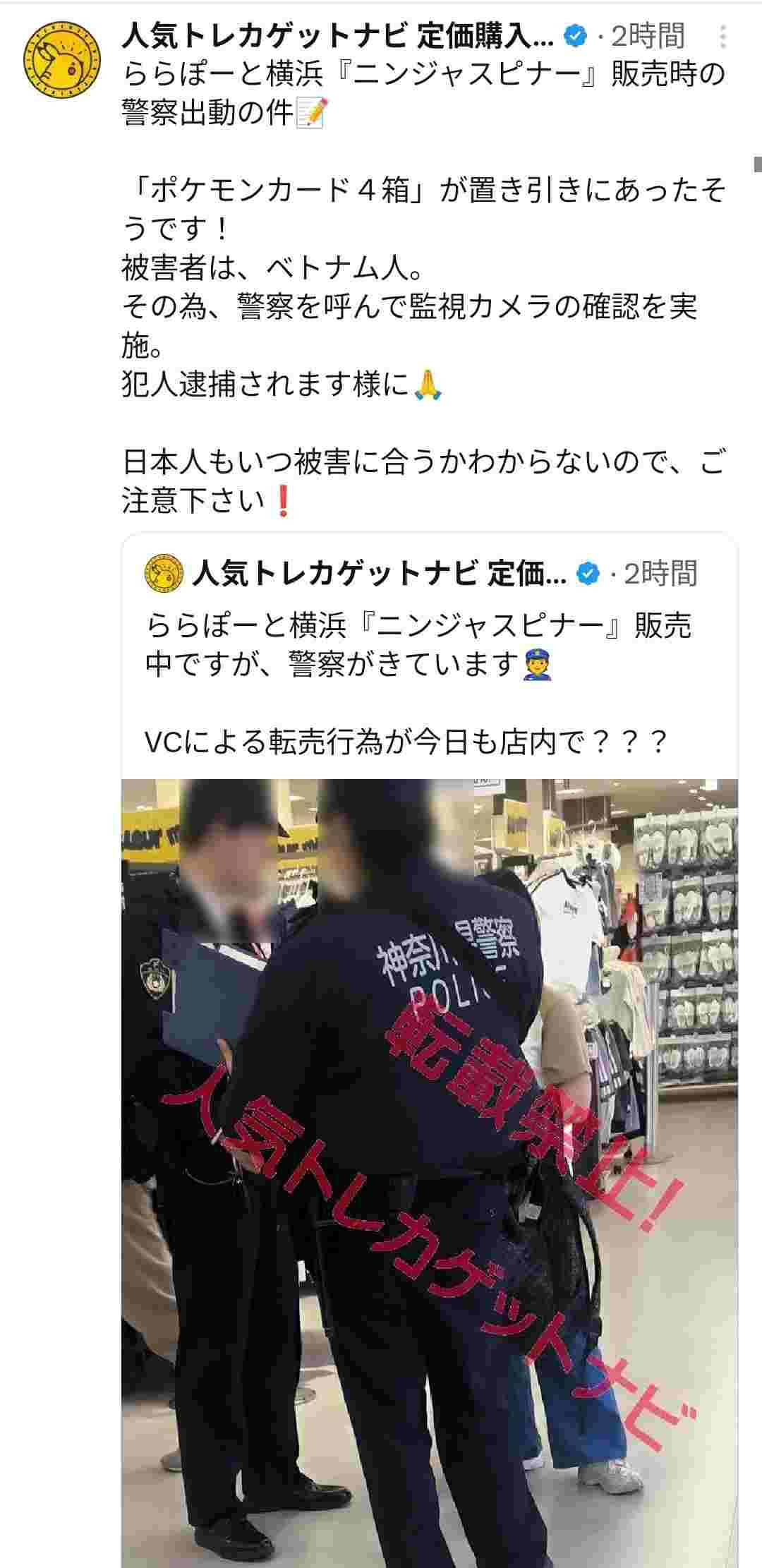 ららぽーと横浜でポケカ商品の置き引きが発生した模様
