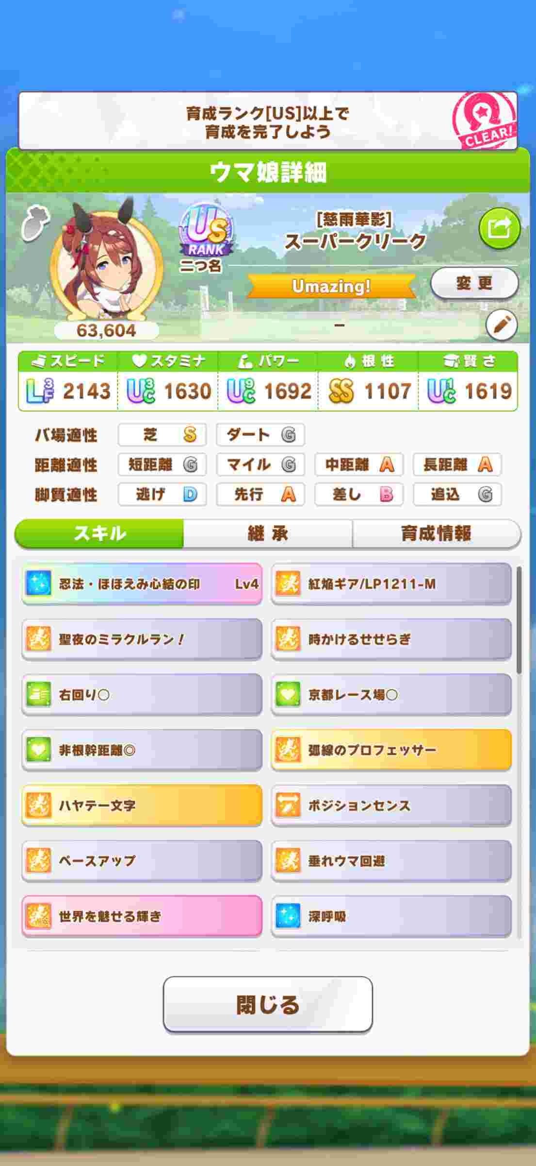 - 今回のチャンミでいうと中距離も長距離も育成の仕方いっしょだよ