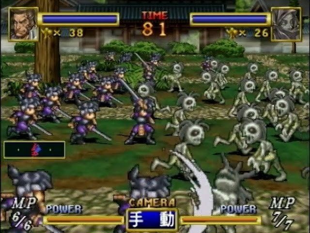 - バトルではプレーヤーの移動操作とかは一切無しで、軍勢の「指揮」と武将の「必殺技」か「魔法」の選択のみになる。そういうのこそ超グラ時代に合ってる 気がした