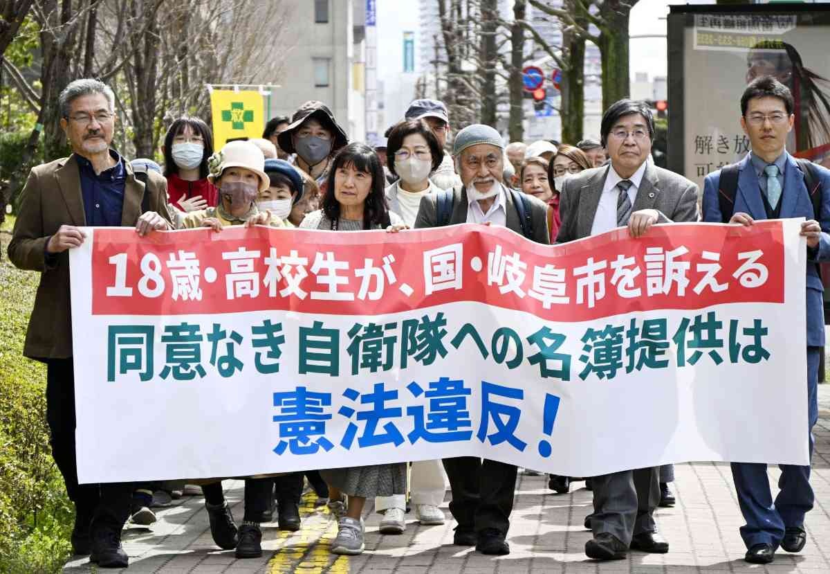 岐阜市が国に個人情報を提供し、国がその情報を利用して自衛官を募集したのはプライバシー権を保障する憲法13条に違反するなどとして、高校生(18)が26日、市と国に110万円の損害賠償を求めて岐阜地裁に提訴した。自身に関する情報抹消も国に求めた。弁護団によると、個人情報を提供された当事者が提訴するのは全国で2例目。