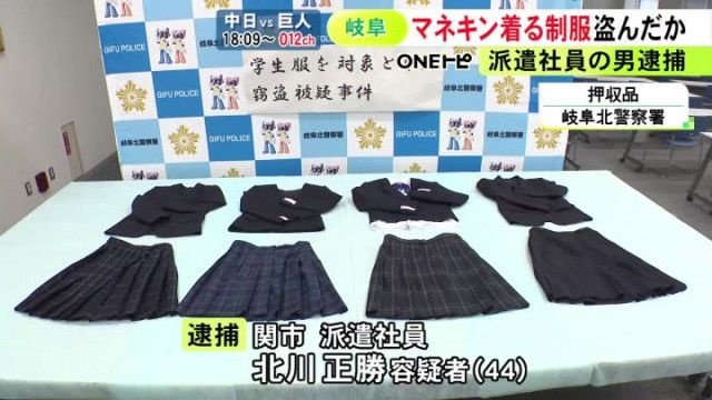 【岐阜】商業施設でマネキンが着ていた女子高校生の制服等を脱がして盗んだ疑い 44歳派遣社員の男を逮捕 余罪も捜査
