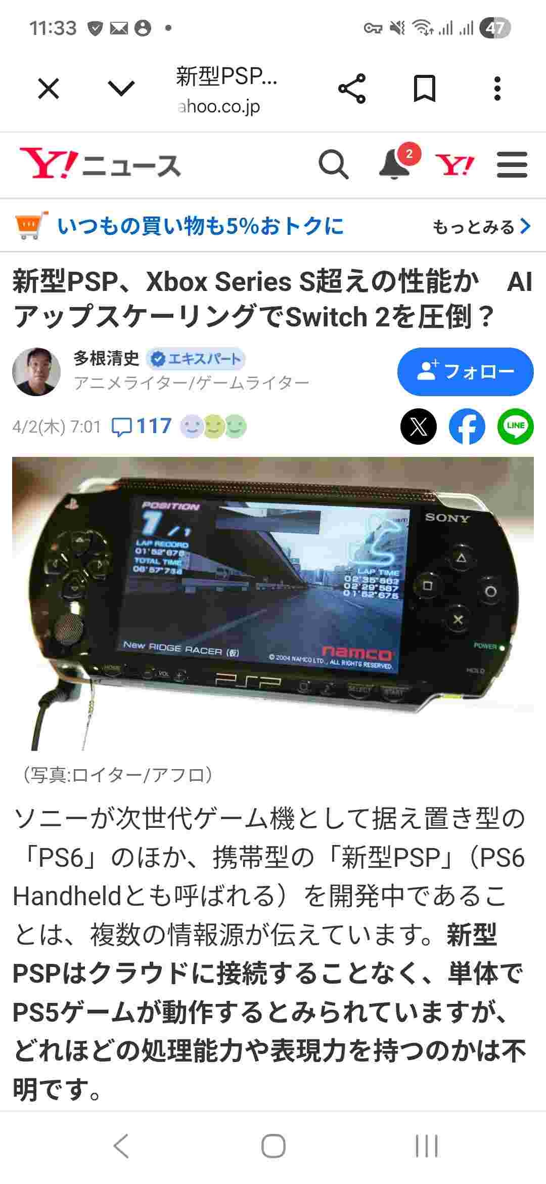 新型PSP、Xbox Series S超えの性能か AIアップスケーリングでSwitch 2を圧倒?(多根清史) - エキスパート - Yahoo!ニュースソニーが次世代ゲーム機として据え置き型の「PS6」のほか、携帯型の「新型PSP」(PS6 Handheldとも呼ばれる)を開発中であることは、複数の情報源が伝えています。新型PSPはクラウドに接続するnews.yahoo.co.jp- 2 : 2026/04/02(木) 18:07:27.12 ID:Og4pbJFA0