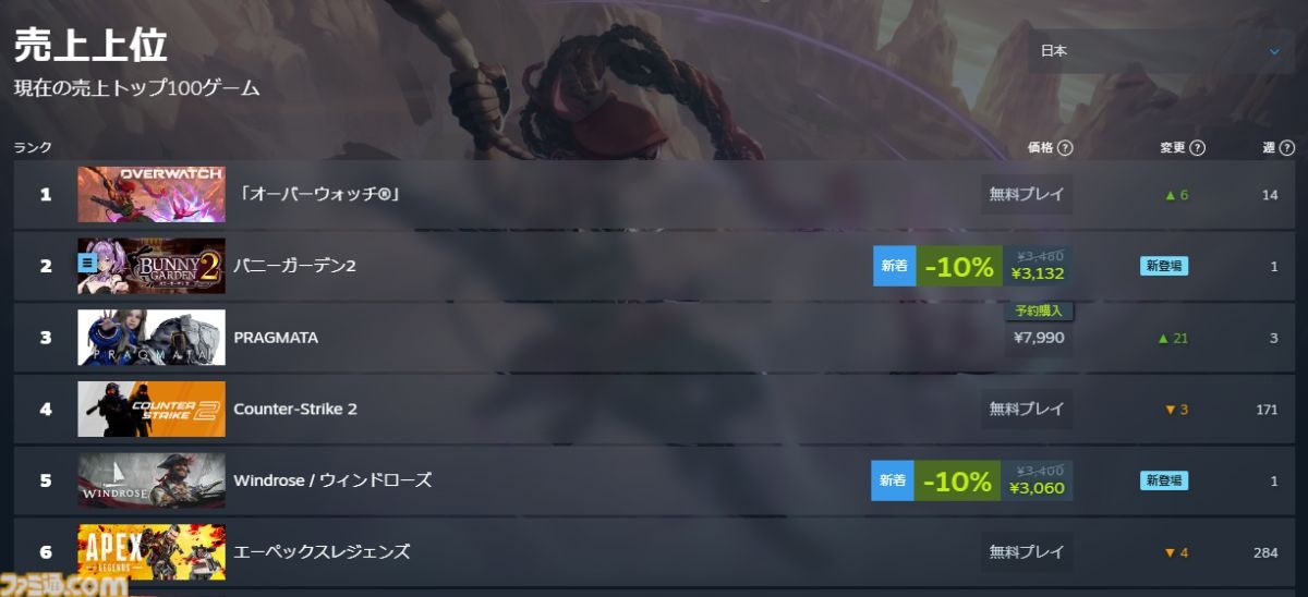 本稿執筆時点の2026年4月16日12時30分には、Nintendo Switchのダウンロードランキングでは3位に。Steamの日本ランキングでは2位にランクインしている。Steamのランキング1位のタイトルはダウンロード無料のゲームのため、有料買い切りゲームとしては1位を記録したことに。日本の新たな夜明けを迎えた気分だ。