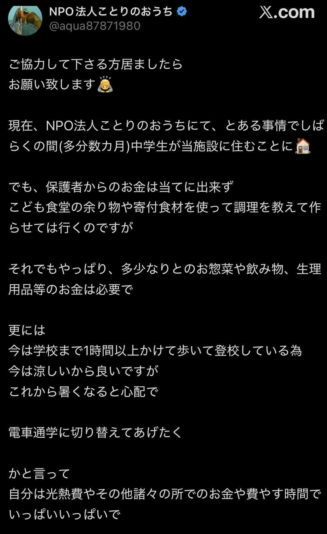 優しい日本人男性「ワケアリ女子中学生と暮らすことになりました。彼女のために生活費用など寄付お願いします」みんなで寄付しよ!