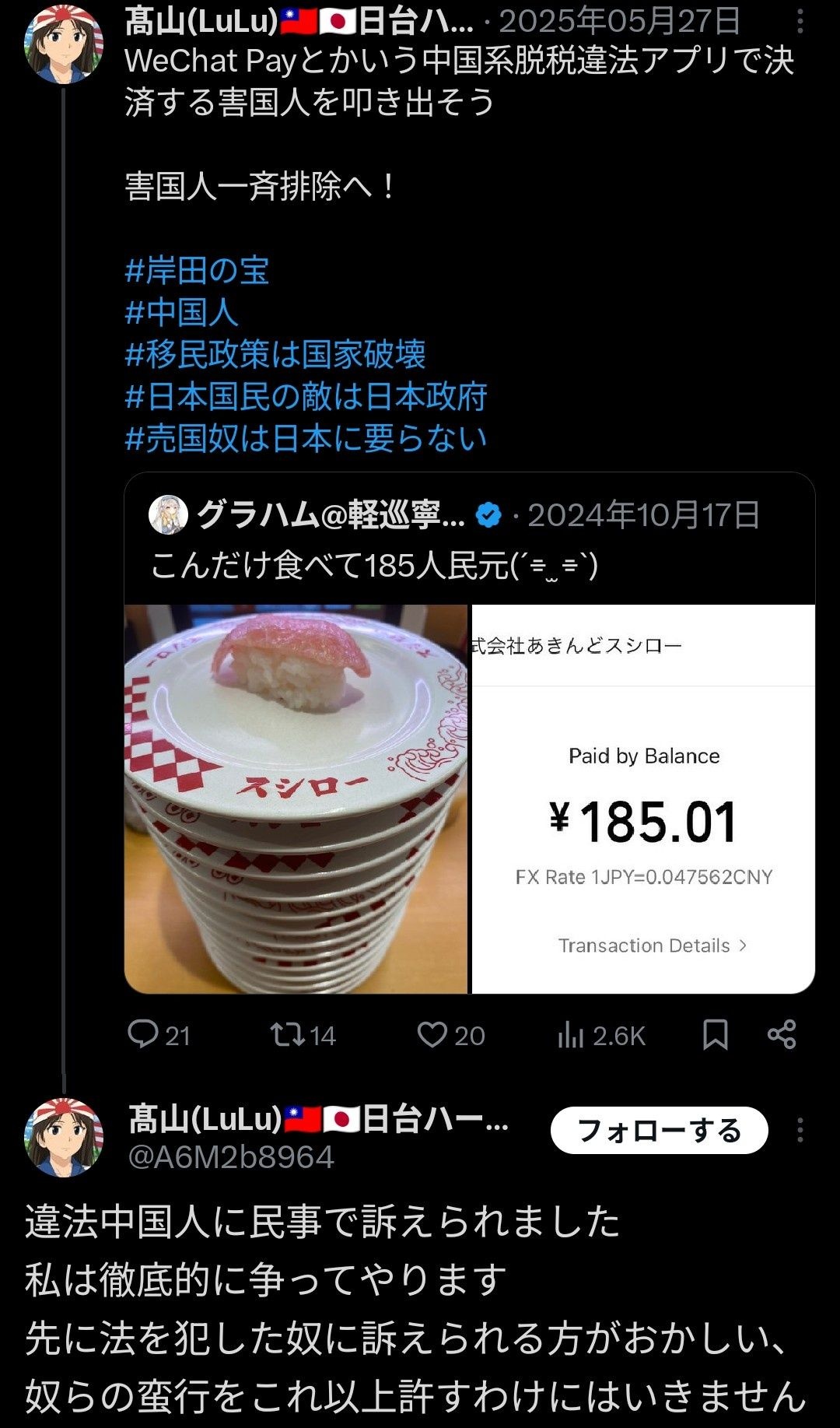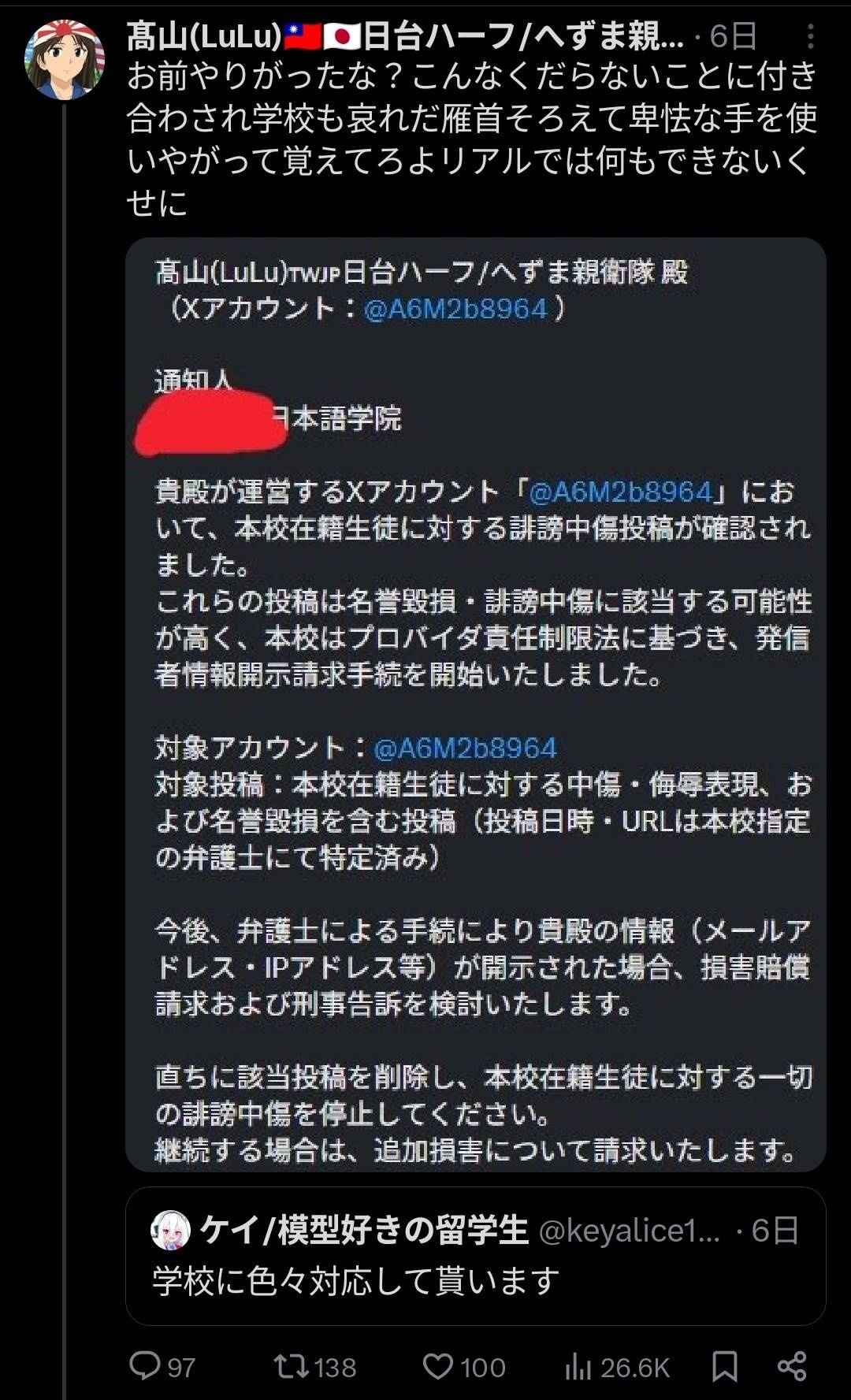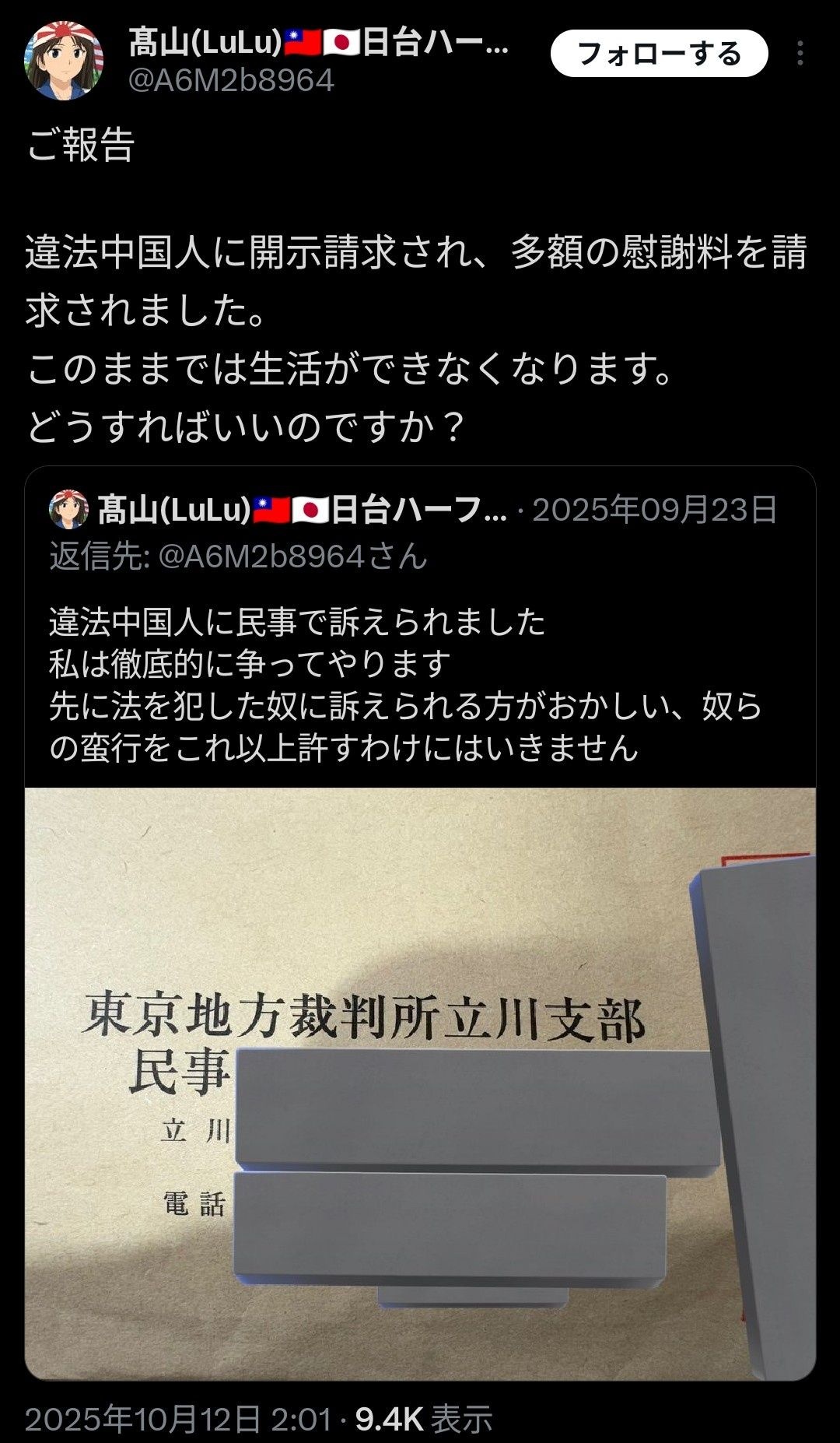 【高市早苗】日本人、中国人留学生に誹謗中傷で訴訟を起こされ台湾に逃亡www