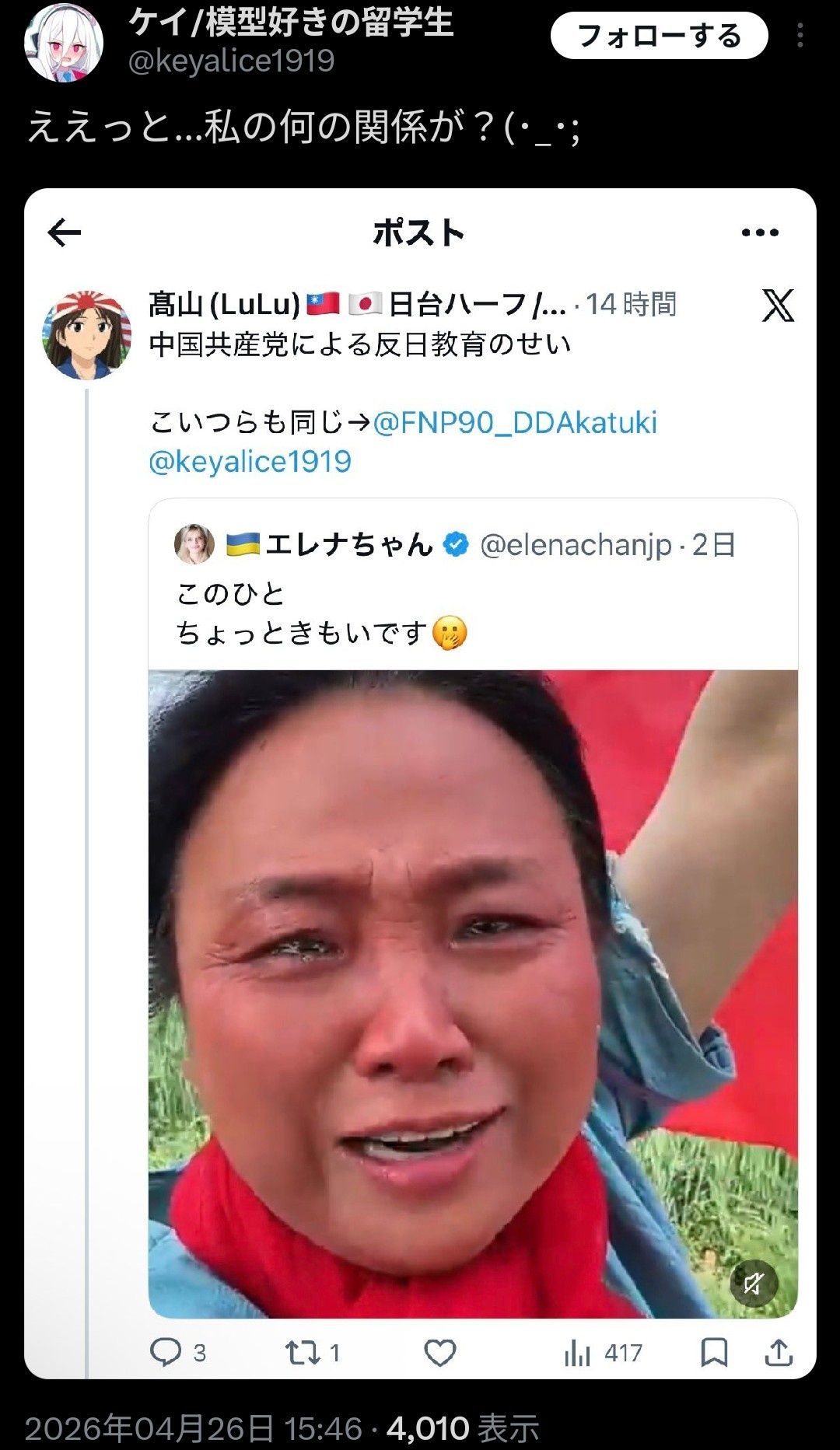- このアカウントの人は見るたびに全部あれは中国人だって言ってる印象あるな