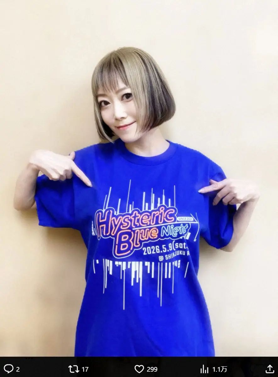 「2026/5/9 Hysteric Blue Night、チケット転売サイトで高額で取引されています」と明かし、「やめてください。私達はそんな事は望んでいません。見ていて苦しく悲しくなります」と訴えた。