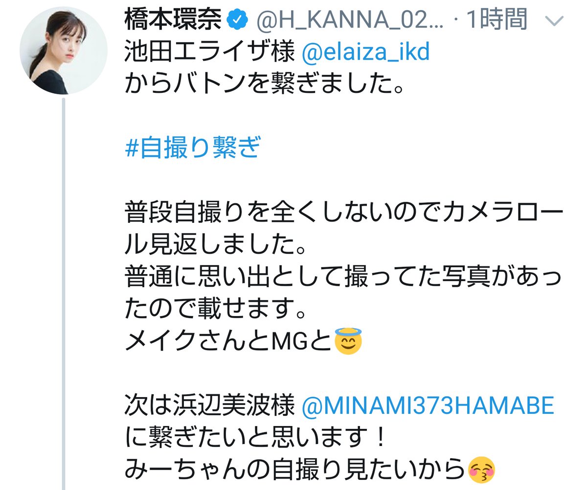 - ハシカン自撮りだとやっぱ美人だな