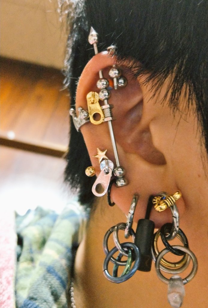 - こんだけピアス付けても隠しきれない陰キャ臭