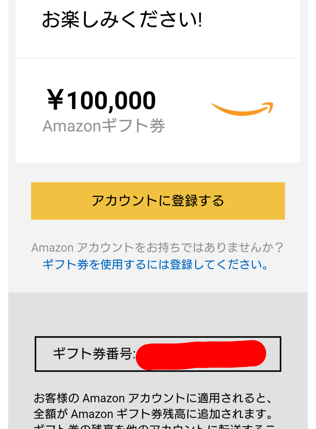 10万円貰えるからクレカでアマギフ10万円買ってきた