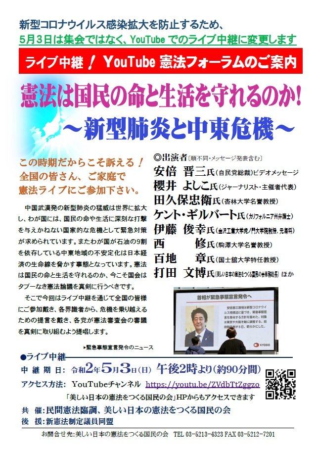 - 安倍ちゃんは憲法のせいで国民の命と生活を守りたくても守りきれないという改憲論者の集いか