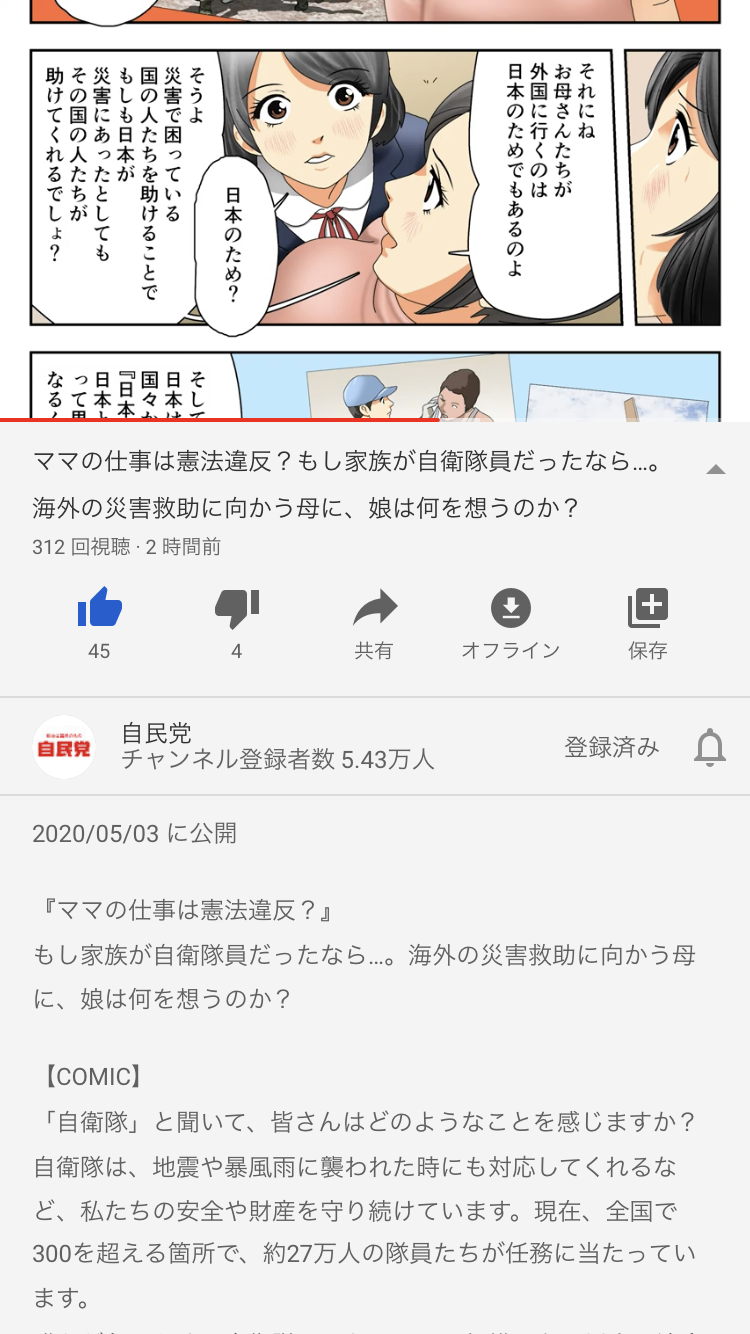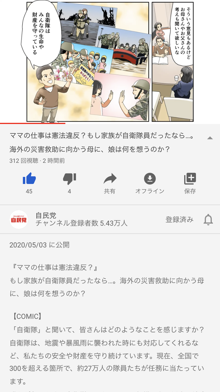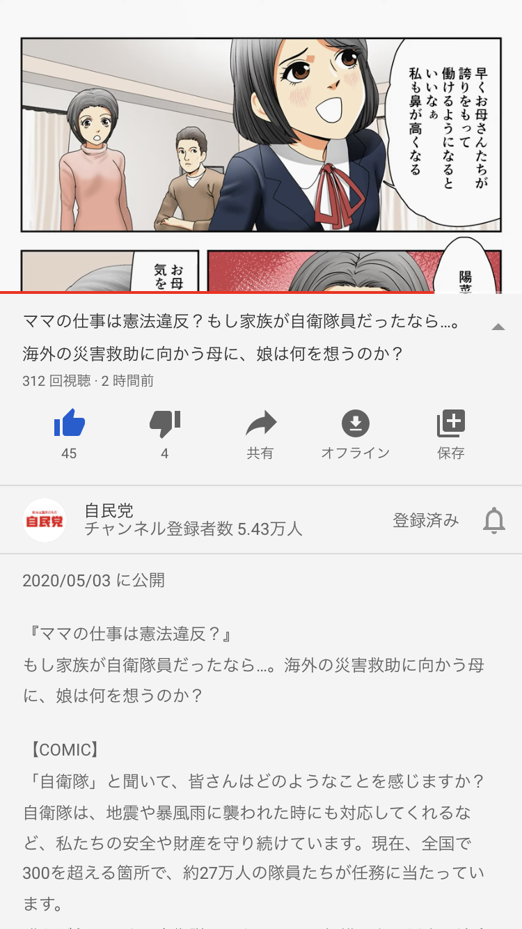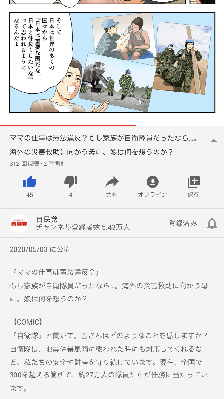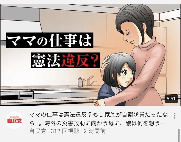 【悲報】 自民党YouTubeでマンガが公開される 「自衛官のママの仕事は憲法違反?」