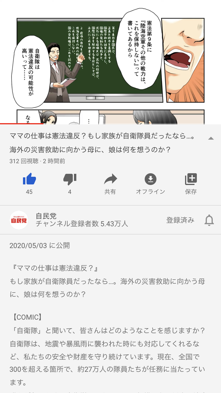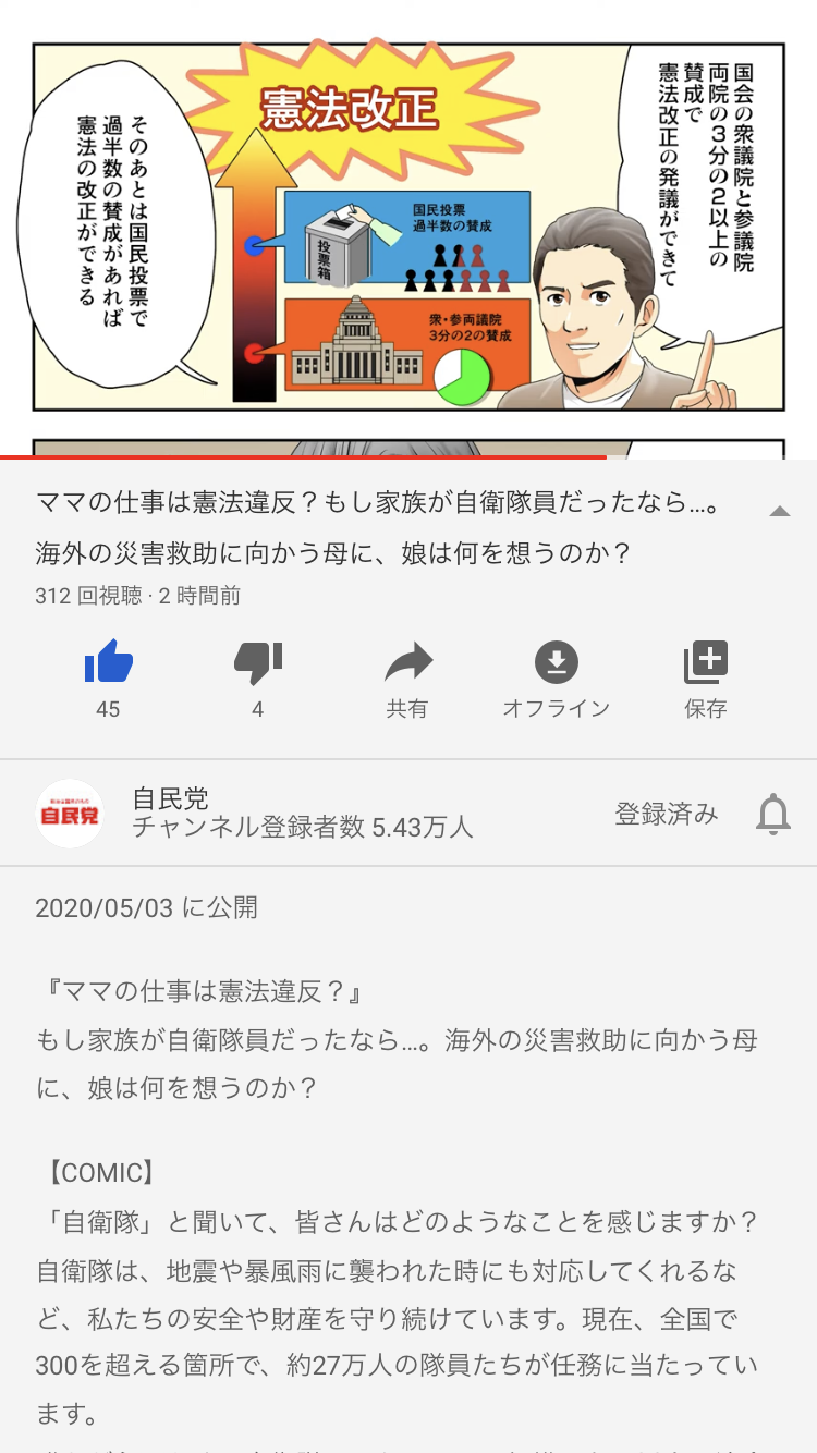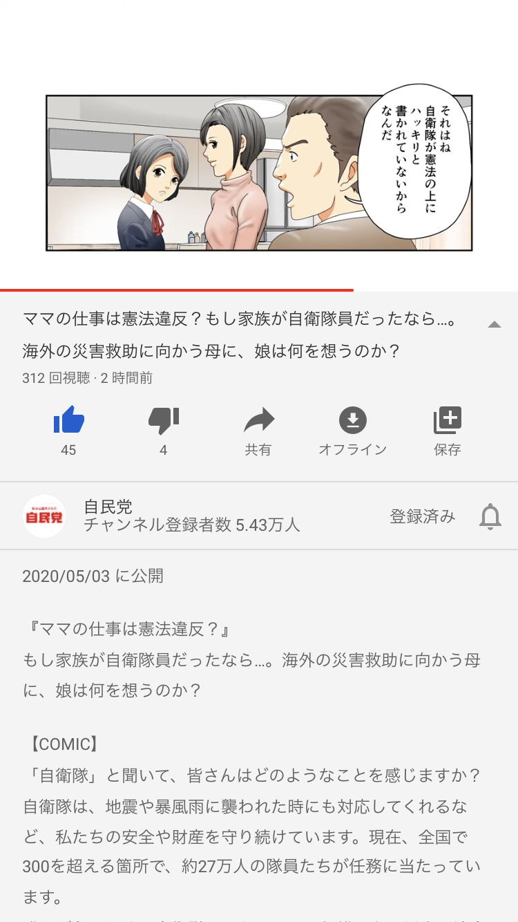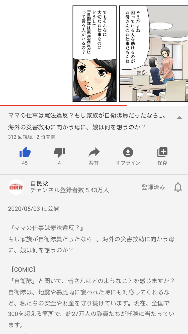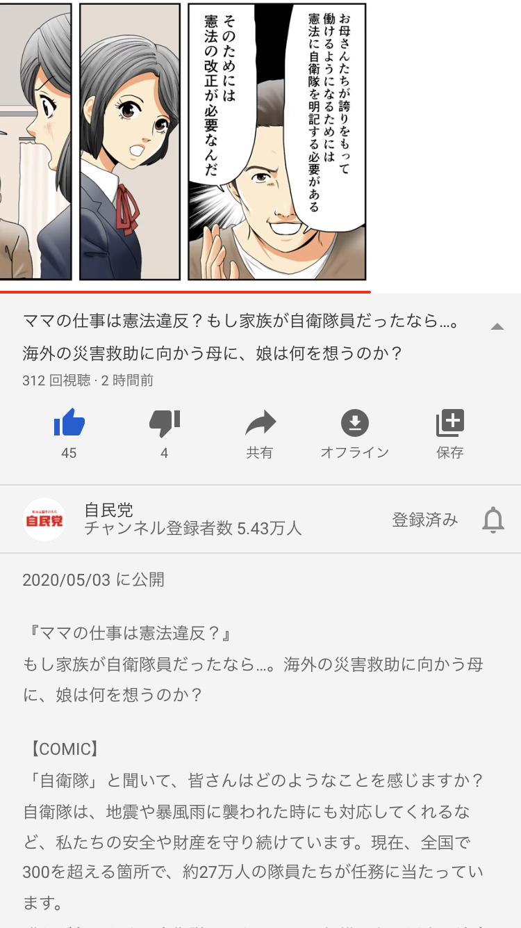 【悲報】 自民党YouTubeでマンガが公開される 「自衛官のママの仕事は憲法違反?」