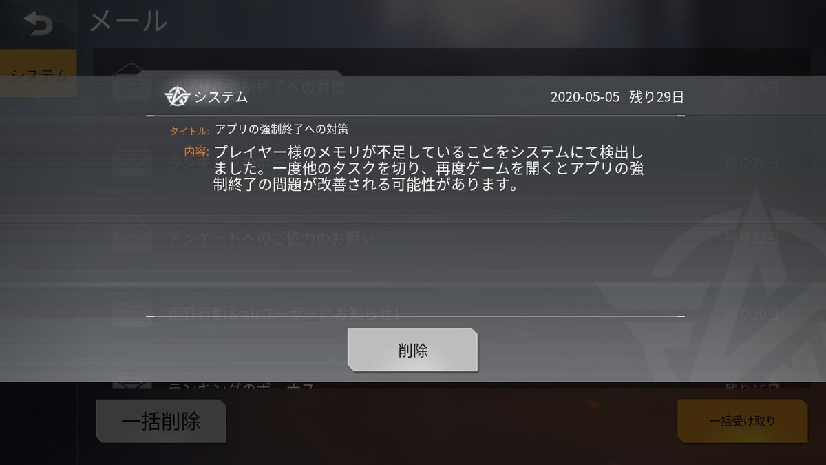 荒野行動の容量が増えすぎたせいでRAMが2Gの端末はほとんど強制終了する見たい 3G以上のスペックに変えるか、